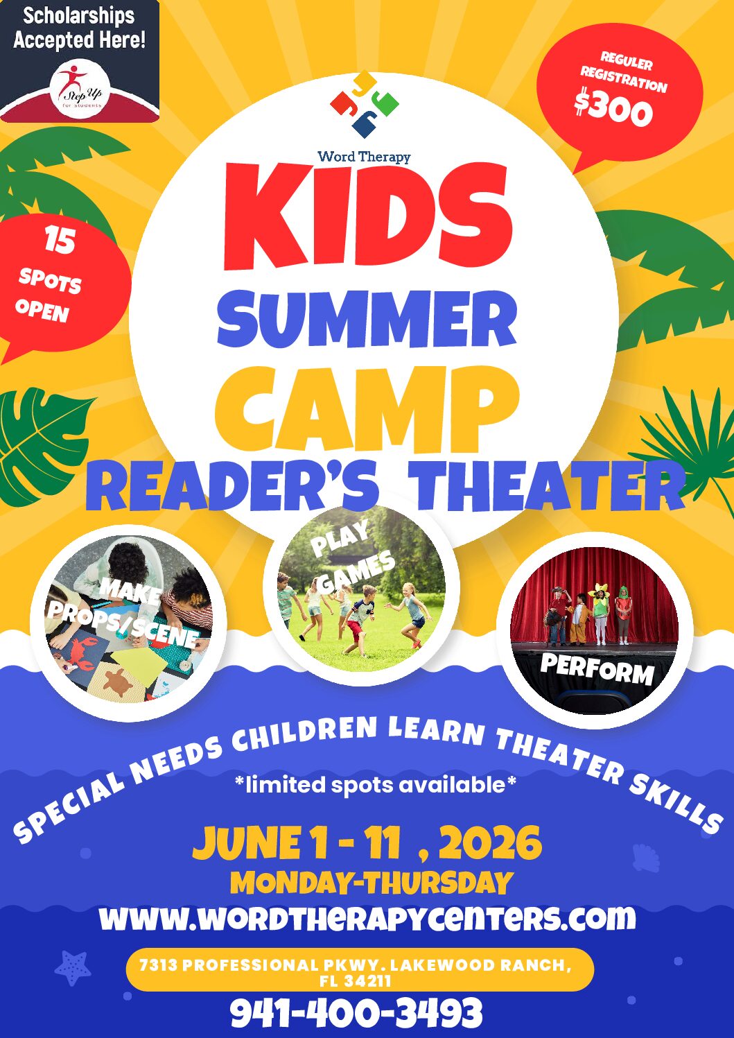 Word Therapy Centers is thrilled to host our Readers Theatre Summer Camp—a unique, engaging program that blends the power of storytelling with the benefits of speech therapy.
